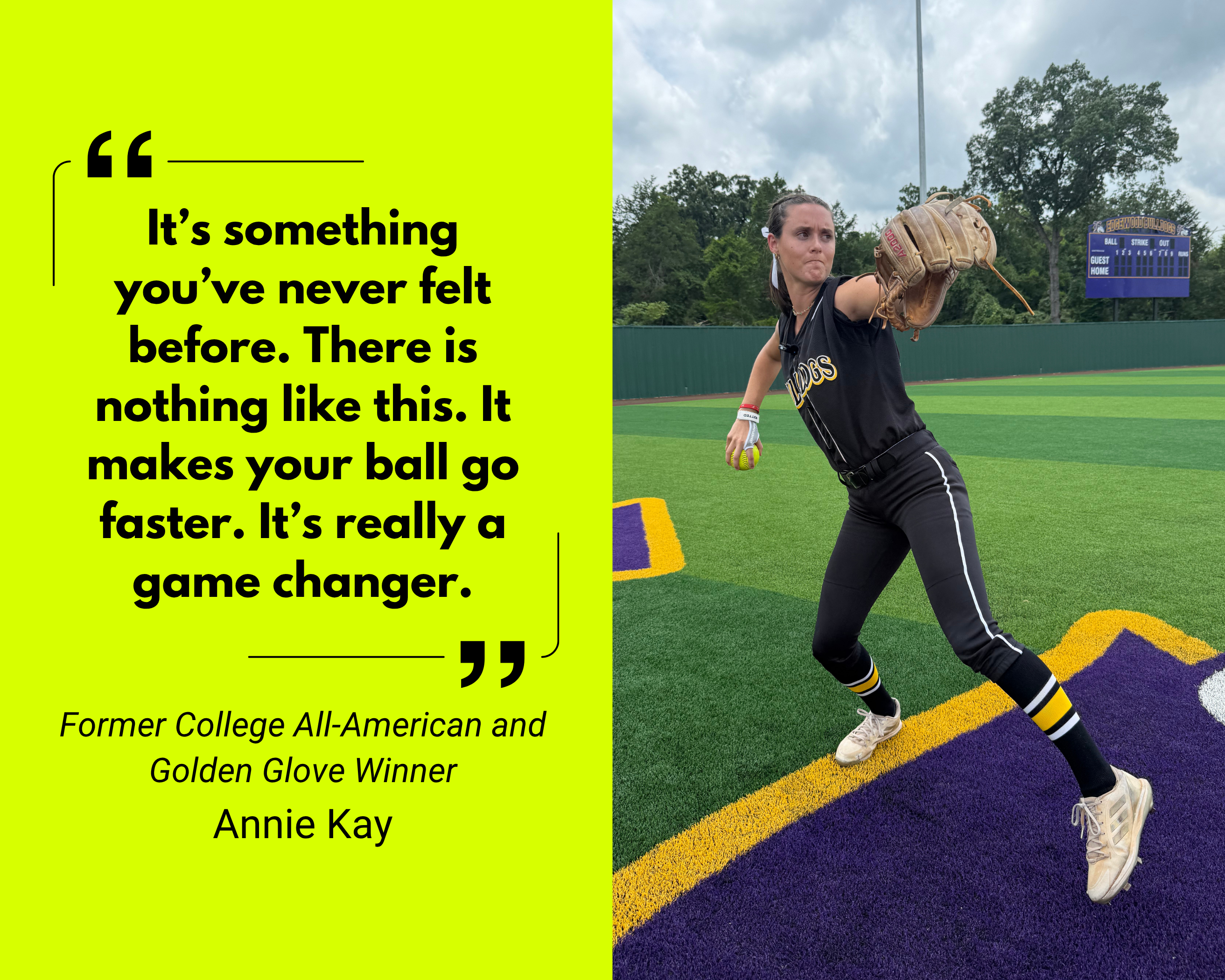 Softball's First and only throwing glove proven to enhance velocity, spin rate, and accuracy.